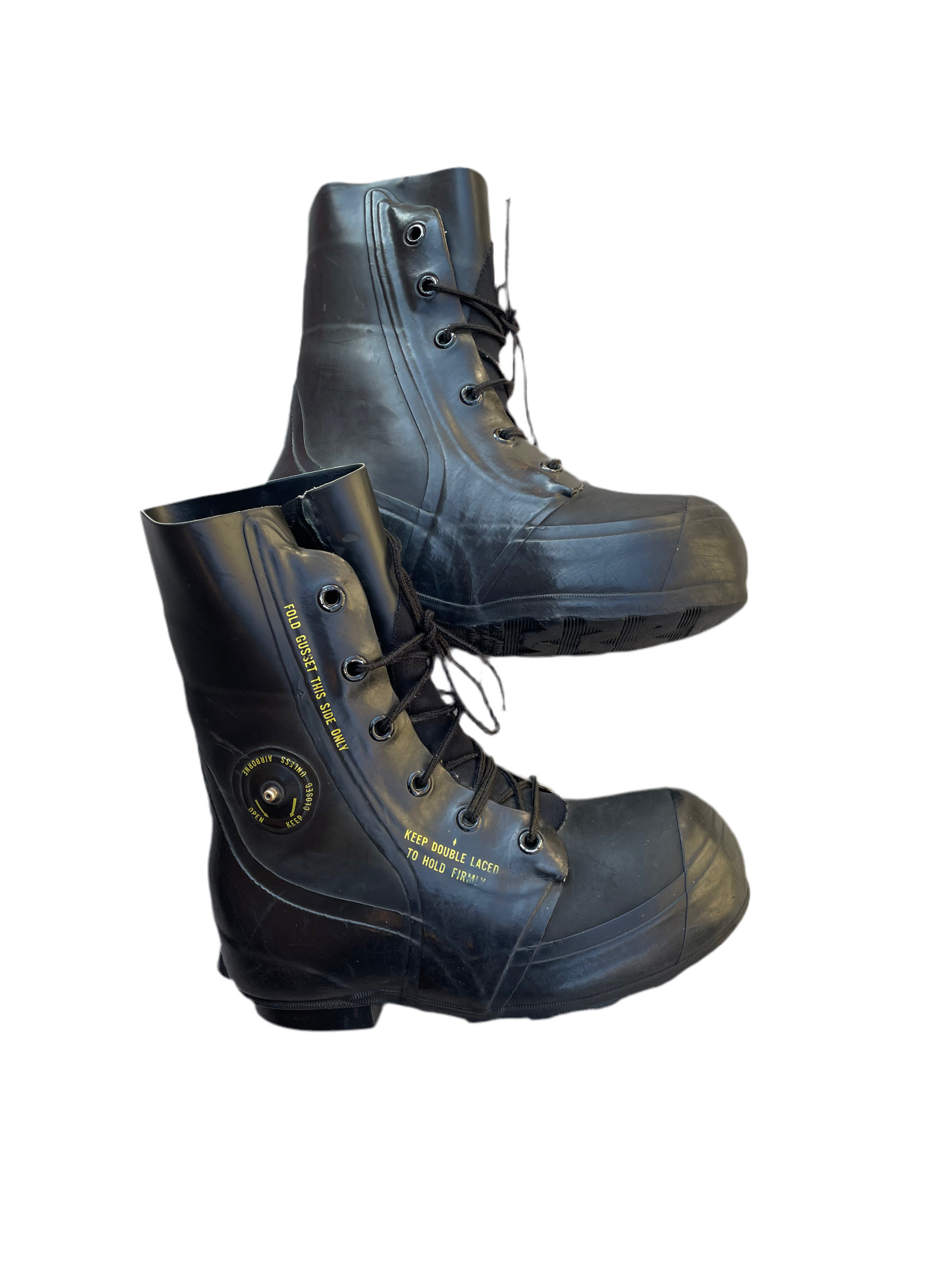 These world-famous "Mickey Boots," are interior is nylon lined for easy on and off. Has high-traction soles and heels and double-thick rubber in all wear areas. Stand 11.5" overall, weighing 53 ozs Double the durability with high-traction soles and heels, and double-thick rubber in all wear areas. These boots stand tall at 11.5 inches and are made with quality materials for easy on and off.